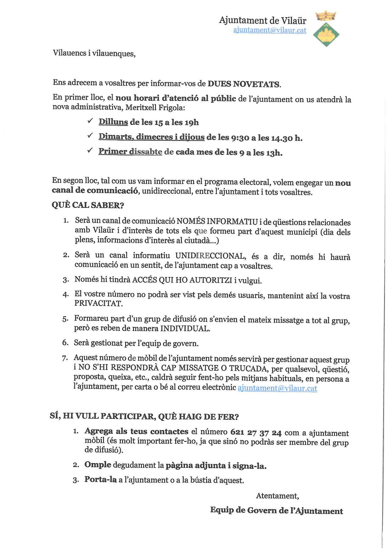 La Diputació de Girona en el marc del programa de Cooperació Econòmica i Cultural de 2019 ha concedit a l´Ajuntament de Vilaür, la seg